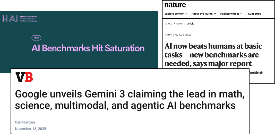 However, while LLM-based models excel on many widely used benchmarks, it is rarely the case that a model’s benchmark performance predicts its actual capabilities in the real world. As one group of AI scholars recently wrote, “AI companies often use benchmarks to test their systems on narrow tasks but then make sweeping claims about broad capabilities like ‘reasoning’ or ‘understanding.’ This gap between testing and claims is driving misguided policy decisions and investment choices....For example, we may incorrectly conclude that if an AI system accurately solves a benchmark of International Mathematical Olympiad (IMO) problems, it has reached human- expert-level mathematical reasoning. However, this capability also requires common sense, adaptability, metacognition, and much more beyond the scope of the narrow evaluation based on [mathematics] questions. Yet such overgeneralizations are common.”