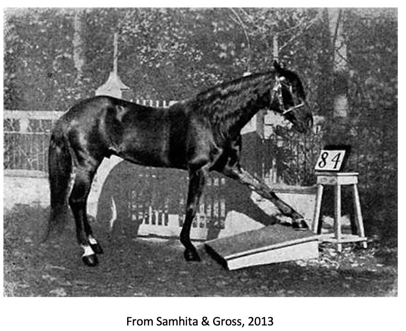 According to Samhita & Gross’s history, observers at first assumed that the horse’s abilities were a hoax, with the horse’s trainer somehow providing Clever Hans with the answers. However, it was shown that Hans could perform his feats even when his trainer was absent. The German board of language carried out a study in 1904 that concluded that Hans’ abilities were genuine, and “the majority of biologists, psychologists, and medical doctors, experts of all kind, and laymen were rather convinced by this example that animals are able to think in a human way.”